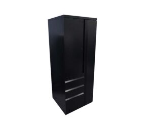 A lockable file with a counterweight that can be used freestanding or mounted under a work surface. Accommodates legal or letter-size hanging files. These are available in 30″, 36″, and 42″ wide, and come in full pull.